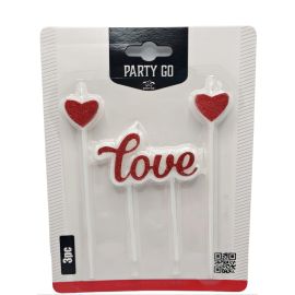 Set 3 Lumanari Aniversare – 2 Inimi & Love – Alb & Rosu – Party Go - ED 0118