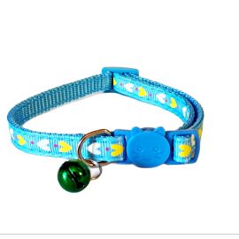 Zgarda Animale Companie - Regrabila cu Clopotel – 1cm x 30 cm - Bleu & Inimioare - V...