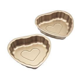 Set 2 Mini Forme Tarte - Otel – Margini Canelate – Auriu Patinat- Forma Inima- A 13401