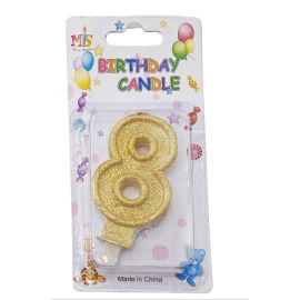 Birthday Candle - Lumanare Tort – Aniversare - Cifra 8 – Alb & Auriu & Glitter