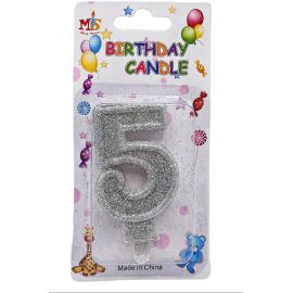 Birthday Candle - Lumanare Tort – Aniversare - Cifra 5 – Alb & Argintiu & Glitter