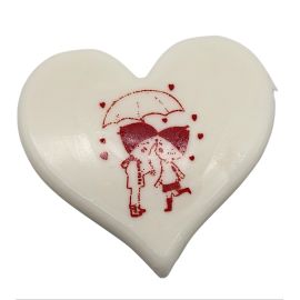 Decoratiune Ornament - Ciocolata Alba – Inima Alba & 2 Indragostiti Sub Umbrela -Cul...