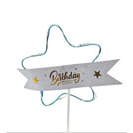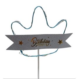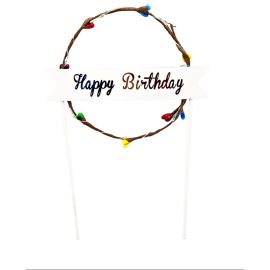 Topper Led Beculete Colorate - Mesaj "Happy Birthday" - Cerc -Maro - Plastic- A13436