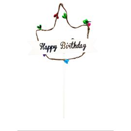 Topper Led Cu Beculete Colorate - Mesaj "Happy Birthday" - Coroana - Maro- Plastic- ...