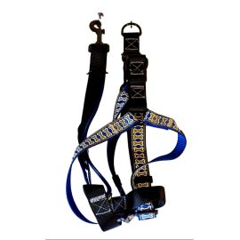 Set Lesa si Ham Reglabil – Caini Talie Medie si Mare – Nailon – Albastru & Imprimeu O...