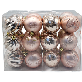 Set 24 Globuri – Plastic – Model Rotund - Roz Gold - SD 10101