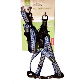 Set Lesa & Ham Reglabil – Pisici & Caini Talie Mica – Nailon – Albastru & Imprimeu O...