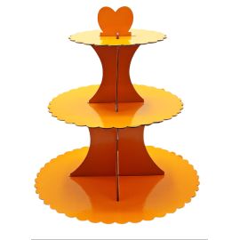Suport Etajat Cupcake & Prajituri – Carton - 3 Platouri - Portocaliu - Margini Dant...