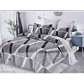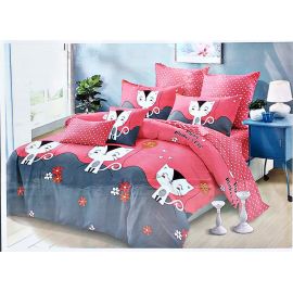 Set Lenjerie - Pat Dublu - 6 Piese - Model Pisica & Inimioare & Flori - Culoare Gr...