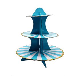 Suport Etajat Cupcake & Prajituri – Carton - 3 Platouri - Dungi Albastru & Alb - Ma...