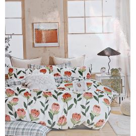 Set Lenjerie - Pat Dublu - 6 Piese - Model Maci Rosii& Frunze Verzi -Culoare Alb ...