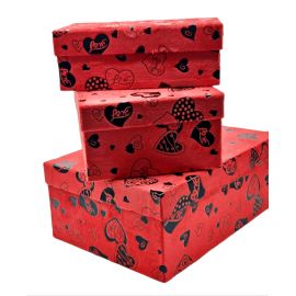 Set 3 Cutii Cadouri – Dreptunghiulare – Carton – 3 Dimensiuni – Rosii- Model Inimi Ma...