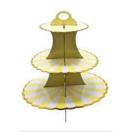 Suport Etajat Cupcake & Prajituri – Carton - 3 Platouri - Dungi Galben & Alb - Marg...