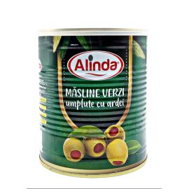 Alinda– Masline Verzi Umplute Cu Ardei Rosu - In Saramura - 850 Grame