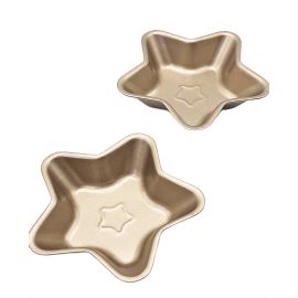 Set 2 Mini Forme Tarte - Otel – Margini Drepte – Auriu Patinat -Stea- A 13401