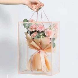 Punga Cadou - Punga Flori - Punga Transparenta 30 x 20 x 16 CM- Margini Crem