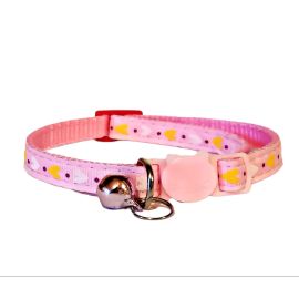 Zgarda Animale Companie - Regrabila cu Clopotel – 1cm x 30 cm - Roz &Inimioare - Viv...
