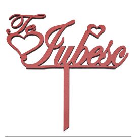 Topper Te Iubesc & Inimi - Rosu - Lemn - Nr 18