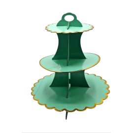 Suport Etajat Cupcake & Prajituri – Carton - 3 Platouri - Verde - Margini Dantelate...