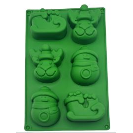 Forma Silicon Craciun - 6 Alveole - Om Zapada & Sanie Cu Cadouri & Ren - Verde