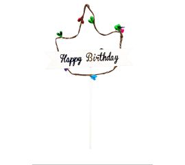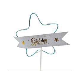 Topper Led - Mesaj " Happy Birthday" - Stea - Albastru - Plastic- A 13436