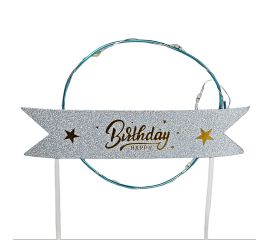 Topperul cu led si mesaj "Happy Birthday" , indeplineste cerintele dumneavoastra decorative, va face tortul mai atractiv, adauga aerul de sarbatoare si festivitate oricarui desert pentru petreceri aniversare pentru copii, tineri, adulti si oameni in varsta. Luminile led au doua moduri de functionare, um mod continuu si unul intermtent