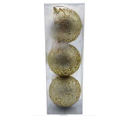 Set 3 Globuri – Polistiren & Pene – Model Rotund - Aurii - SD 50329