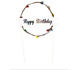 Topper Led Beculete Colorate - Mesaj "Happy Birthday" - Cerc -Maro - Plastic- A13436