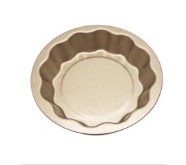 Set 2 Mini Forme Tarte - Otel – Margini Canelate & Drepte – Auriu Patinat - Forma Rotunda- A13401