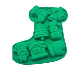 Forma Silicon Soseta Craciun - 7 Alveole - Clopotei & Soseta & Om Zapada & Brad & Mos Craciun -& Casa & Manusa - Verde