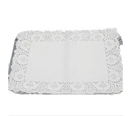 Platou Carton Dreptunghiular & Folie Decorativa Dntelata Hartie - Argintiu- 32 x 21 Centimetri -A07101