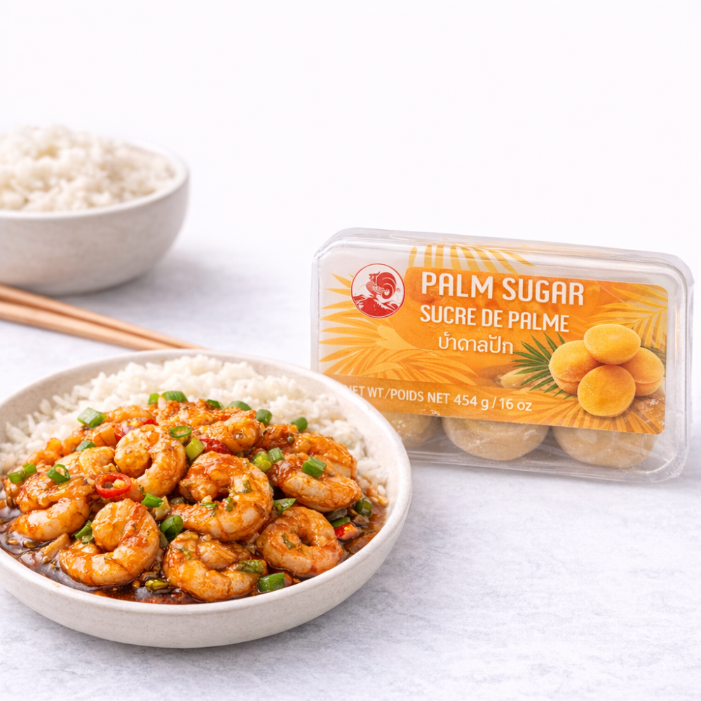 Zaharul de palmier ofera o dulceata mai complexa si mai „rotunda” fata de zaharul obisnuit, creand acel gust autentic asiatic dulce-sarat-acrisor.